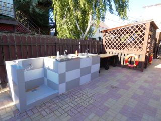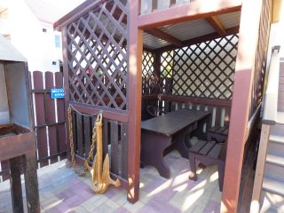 Территория дома имеет свой огороженный двор. Двор вымощен тротуарной плиткой, свободный от транспорта. Территория гостевого дома охраняемая, имеется собственная парковка.